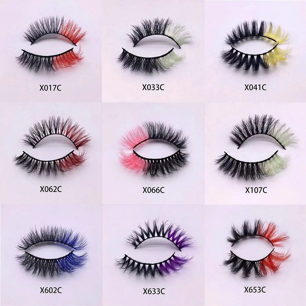 3D Color False Lashes Natural Long Colorful Eyelashes Dramatic Makeup Fake Lash Party Colored Lashes for Cosplay Halloween