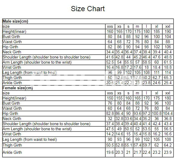 Size chart: The suggested size is for reference only. If your measurement hovers between two sizes, recommend choosing the larger size.