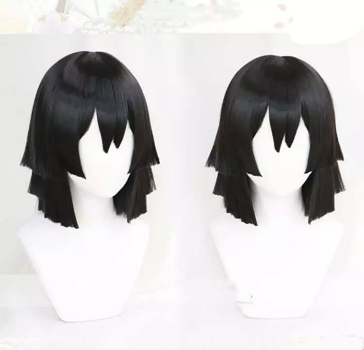 Anime Demon Slayer: Kimetsu no Yaiba Iguro Obanai Cosplay Wigs Black Heat Resistant Synthetic Hair Wig + Wig Cap