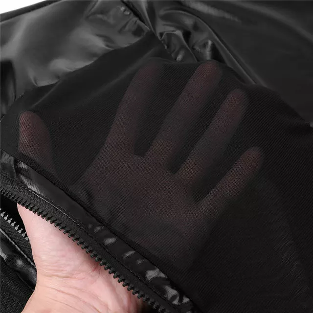 Long sleeves and mock neck, mesh splice and zipper crotch design, front zipper from neck to waist closure.
