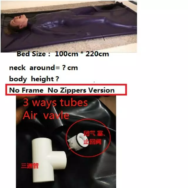 - No Frame/bracket no zipper neck entrance vacuum bed with one directionair stop valvle.