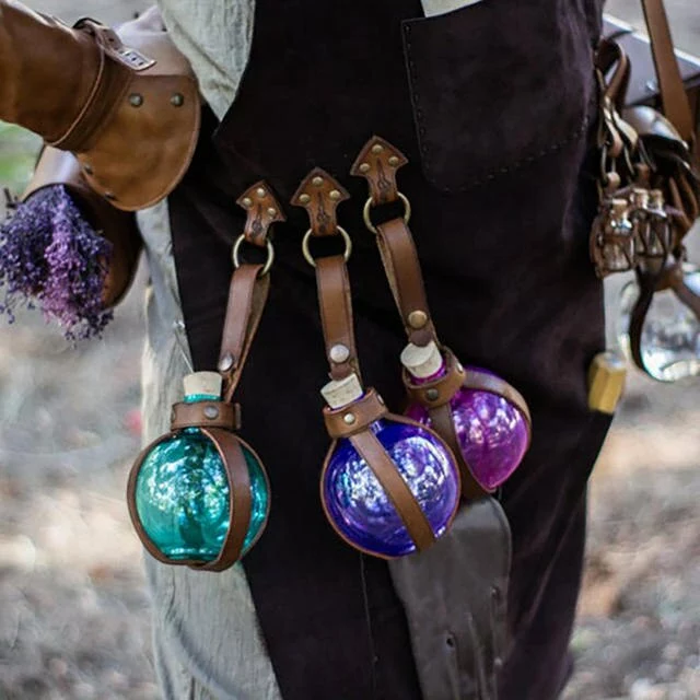 Medieval Alchemy Round Flask Potion Bottle With A Cork Leather Holder Steampunk Belt Accessory For Larp Costume Cosplay Perfumes