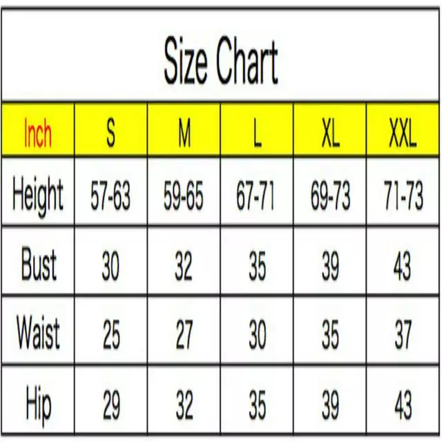 - S?Height?57-63in Bust?30in Waist?25in Hip?29in