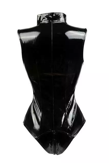 Sexy patent leather DS Black Jumpsuit Tightsbare midriff zipper sexy lingerie Costume role-playing women women cosplay costume