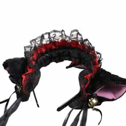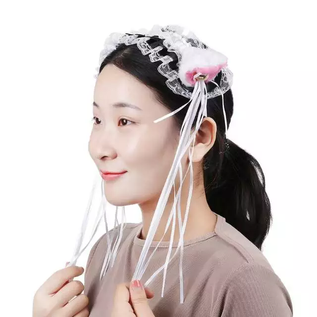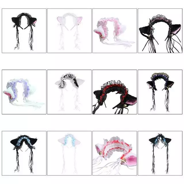 Women Ruffles Lace Headband Plush Cat Ears Ribbon Bell Lolita Cosplay Hair Hoop