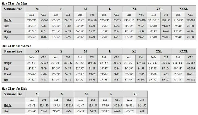 Please check the size chart to choose your size, or you can also give us your size: height, bust, waist and hip, we will make the costume according to the size. Different genders , measurement is different. When you choose your size, please refer to the gender size chart .