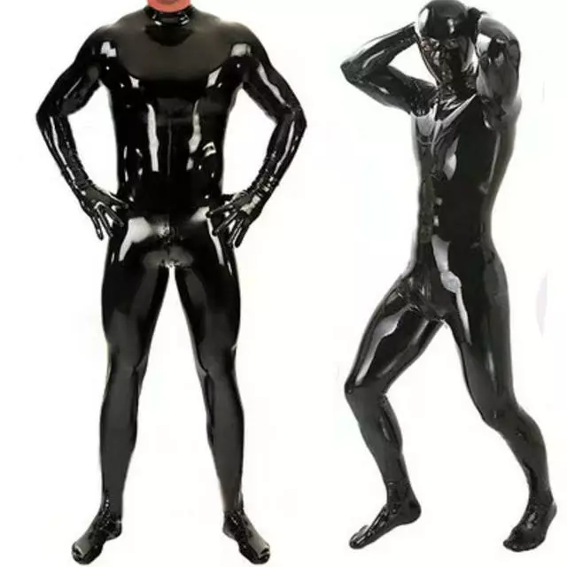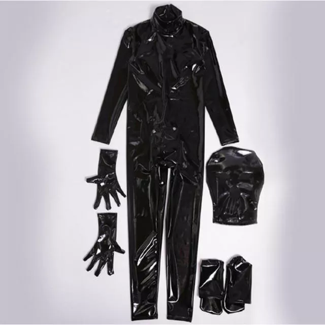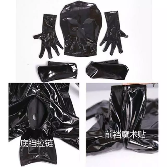 Man Full Tights Cosplay Shiny Full Body Cover Bodysuit Wetlook PVC Glitter Zipper Open Crotch Footman All-inclusive Straitjacket