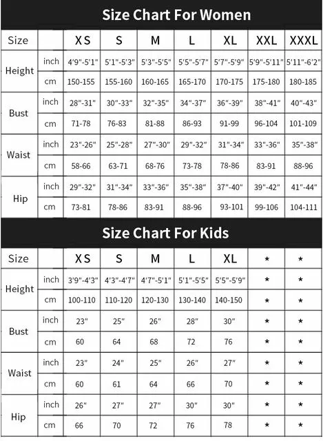 3.Size: Child (XS/S/M/L/XL),Adults (XS/S/M/L/XL/XXL/XXXL)