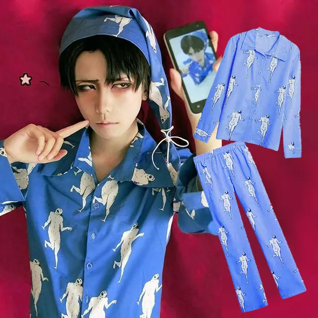 Anime Attack on Titan Levi Pajamas Sleepwear Shingeki No Kyojin Cosplay Costume Adult Pyjamas Pijamas Shirt Pants With Hat