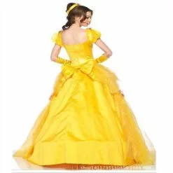NuoNuoWell Beauty And The Beast Bell Yellow Long Dress Halloween Costume Belle Princess Masquerade Carnival Adult Suit
