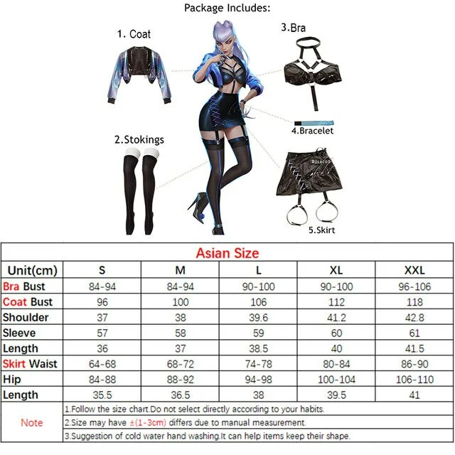 ROLECOS Game LOL KDA Cosplay Costume Evelynn Cosplay Costume Women Sexy KDA All Out Evelynn Comtume Halloween Bra Skirt Full Set