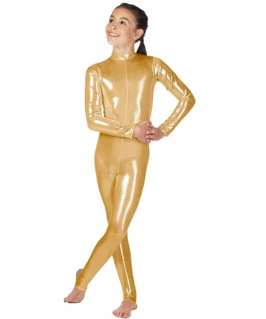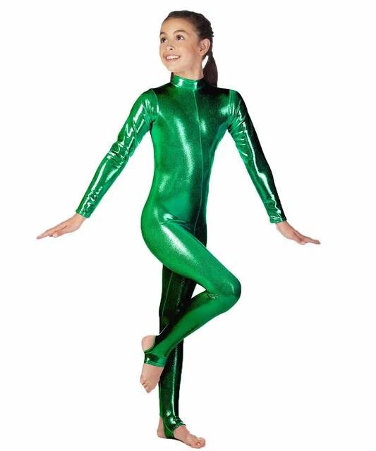 Speeris Girls Long Sleeve Shiny Metallic Unitards Stirrups Dance Gymnastics Dancewear Stage Performance Show Suit